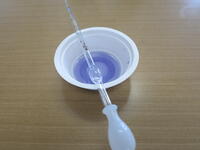 本日、6年生の理科の「水溶液の性質」の学習と食育をコラボした、栄養士の若松先生と担任による授業を実施しました。「カラフルなやきそばをつくろう!」をめあてにした焼きそばの実験です。まず、紫キャベツを切って袋に入れ、お湯を入れてよくもんで紫キャベツの汁を作ります。できた汁にはアントシアニンが含まれているので、それが試薬となります。塩、砂糖、酢、レモン、蒟蒻の汁、重曹の水溶液にこの試薬を入れると、中性は青色で変化なし、酸性は赤ピンクに変化し、アルカリ性は少し緑色っぽく変化しました。理科の学習の復習です。