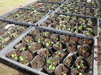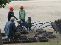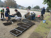 先週、にじいろ学級のお友だちと1年生が、春の花のパンジーやノースポールの苗植えに使うポットの土入れ作業を行いました。たくさんの苗を植えるため、たくさんのポットが必要になります。子どもたちは、とても楽しそうに、真剣に作業を行いました。来年の春には、色とりどりの花がたくさん咲いた、花壇やプランターが見られそうです。