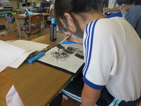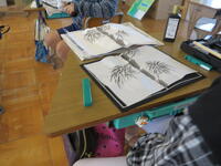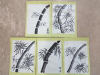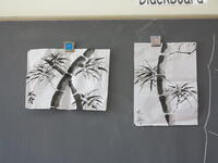 10/29(金)に、6年生が「水墨画」にチャレンジしました。墨を水で薄め、筆の使い方で濃淡を出しながら「竹」を題材にして作品作りにチャレンジしました。それぞれが、真剣に取り組み、節や葉っぱの表現に工夫をこらしていました。一人一人違った作風で、個性あふれる作品が仕上がりました。