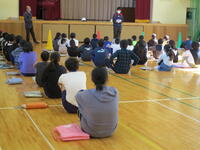 本日、4校時に火災を想定した避難訓練を行いました。給食室より出火したという想定です。今日の朝方の大雨で、校庭がぬかるんでいたため、避難場所は体育館としました。火事の時は、迅速に火元から逃げて離れることが大切です。また、延焼をおさえるために、窓を閉めて酸素の供給を少なくします。(煙が充満してしまう時には、窓を開けて排煙することもあります。)また、カーテンが閉まっている場合は、消火の際に水の通り道の妨げにならないようにカーテンを開けます。「いざは常なり」日頃の訓練が大切です。児童全員、口を結んで素早く避難できました。