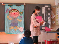 本日、1年生が「歯磨き指導」を受けました。講師の先生からは、歯の健康についてたくさんのことを教わりました。特に1年生の頃生えてくる6才臼歯は、永久歯のため、一度虫歯になってしまうと大変なこと、生えそろうまでは歯ブラシで磨きにくいので、「いばりんぼう磨き」をすること、歯ブラシの大きさは自分の指2本分がちょうどであること、後ろから見てブラシが飛び出ているものは、替えた方がいいことなどです。10歳までは、おうちの人の仕上げ磨きや確認が必要であること、小学生でも歯肉炎になる子が増えていることについても教わりました。