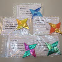 資料の封筒の中に、1年生が用意した折り紙で作った作品を入れて、新入学生のプレゼントとしました。今日は会えませんでしたが、来年の4月に入学してくる新1年生と会えるのを楽しみにしています。