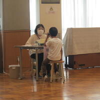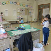 今日は、視力・聴力検査を実施しました。1年に1回検査をし、見え方やきこえを確認します。入学して間もない1年生も検査しました。小学校での視力・聴力検査は、初めてでしたが、頑張りました。全ての検査が終わりましたら、結果を健康手帳でお知らせします。また、医療機関で再検査が必要な児童には、治療勧告書をお渡ししますので、速やかに医療機関を受診していただきますようお願いいたします。