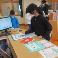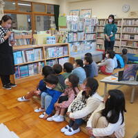 今日、1年生は、図書館司書の手塚先生のお話を聞きに図書室に行きました。図書室の説明と図書室の使い方についての話を聞くためです。1年生は、「図書室にある本は、福二小のお兄さんお姉さんは勿論、福二小から卒業していった先輩たちが大切にしてきた本であること、自分だけの本ではなくみんなの本であること、大切に扱い大切に読んでほしいこと」などの手塚先生の話を真剣に聞いていました。1年生が読みやすい本が入っている場所は、下から2番目の段、そして、青いシールが貼ってある本ということも教えてもらいました。また、「本を破ったり、切ったりしてしまったときは、セロテープで修理したりせずそのままの状態で持ってきて先生に渡す」という約束もしました。セロテープ等での修理は、変色してしまうなど、逆に紙を傷めてしまい、本の修理には、専用のものを使う必要があるからです。