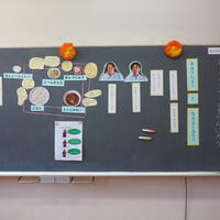 今日は、1年生の給食開始日でした。メニューは、福二小で大人気の「福二カレー」です。給食の前には、栄養士の若松先生からは、「給食を作っている調理員さんたちのこと、配膳の仕方、あいさつを手話ですること、給食の食べ方の約束」の説明がありました。また、一人一人配膳の練習を行いました。