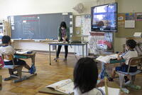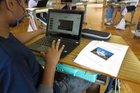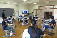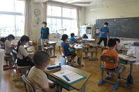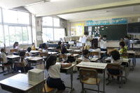 今日の学習の様子です。運動会や陸上競技大会が終わり、忙しさも一段落し落ち着いて学習に取り組むことができる環境となりました。教室を回ってみるとそれぞれの教室で、様々な学習が展開されていました。音楽、算数、国語、外国語、総合などに真剣に取り組んでいました。1年生はタンブリンを使ったリズム打ちの学習、2年生は直線の学習、3年生は3桁の筆算の学習、4年生は説明文の読み取りの学習、5年生は各教科の名称を英語で確認する学習、6年生は校外学習のしおりを分担してクロムブックを使って作成する学習、にじいろ学級ではEテレを活用して学習していました。