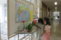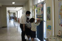 隣のブースの「ナミアゲハ」の幼虫の中には、前蛹からさなぎになっているものもあり、子どもたちは興味津々です。夏型アゲハですから、もうすぐ羽化します。家族の団欒で、学校の掲示物について話題にしてみてください。学校と家庭でタッグを組んで、お子さんの学びの輪を広げていきましょう。