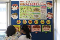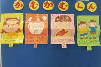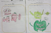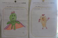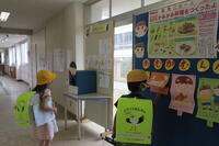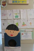 児童昇降口の掲示物や展示物を紹介します。登校時等、福二っ子は、昇降口の掲示物や展示物をよく見てくれます。まず、食育関係です。「噛むことの大切さ」についての掲示物、「苦手克服キャラクター募集」についての掲示物があります。特に、6/1(水)配付した「給食だより」の裏側で募集した「苦手食べ物克服キャラクター」については、配付翌日6/2(木)に何人もの1年生がキャラクターを描いて持ってきてくれたのでびっくりしました。二日目の今日は、他学年児童の応募も増え、にぎやかになりました。子どもたちがつけてくれたキャラクターの名前の一部を紹介します。【〇ごおやまんおうじ〇エービフライ〇さかなせいじん〇ほねほねにんじゃ〇ごおやまん〇みにとまとん〇悪魔のピーマン〇なすせーじん〇ピーマーン〇ピーマンたろう〇きのぴ(あかちゃん)】どれも、大人を唸らせるキャラクターばかりです。
