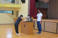 最後は、校長の話です。「いじめ」についての話に重点をおきました。「いじめ防止推進法第4条」には、「児童生徒等はいじめを行ってはならない。」と明記されていることについて触れ、身体的暴力はもちろんのこと「無視、仲間はずれ、陰口(インターネット上含む)」「相手の持ち物を脅かす行為」はいじめであること、心当たりがある人は、今すぐにやめるように、そして、周りの人は見て見ぬふりをしないことを話しました。いじめを「しない、させない、許さない」を合言葉に、みんなの力を合わせて「いじめゼロ」を目指していきます。