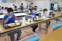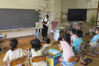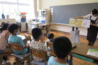 今日は、2年生が給食で使うとうもろこしの食材の皮むきをしてくれました。さすが2年生です。すぐにコツをつかんで、一人3本の皮むきをしてくれました。今日の給食のとうもろこしご飯は、とうもろこしの芯だけをお米の上に置いて炊いているので、ごはんに風味がついています。2年生はその後、学校図書館支援員の手塚先生に「やさい」が主人公の絵本の読み聞かせをしていただきました。食育と給食+読書指導を加え、効果的な指導をしています。