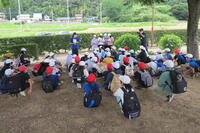 5年生の林間学校1日目の様子です。台風が心配されましたが、曇り空で暑さもやわらぎ、よい環境でハイキングができました。小町の里で、二ツ塚小、福田一小、福田二小合同の混合グループを作り出発しました。頂上の朝日峠は、見晴らしがよく気持ちの良い場所でした。景色を堪能しながらお弁当を食べました。茨城県青年の家での入所式とインドアビンゴは、福二小の担当でした。実行委員が練習の成果を発揮しました。