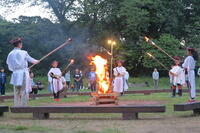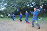 夕食後のキャンプファイヤーでは、他校の友だちとダンスをしたりゲームをしたりして、全員満面の笑みで楽しい時間を過ごしました。友だちと一緒に見た「火の神から授けられた炎」を子どもたちは一生忘れないと思います。
