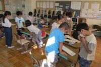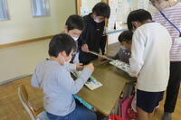本日、3年生が2年生の教室に行き、国語の「のらねこ」の学習で作成したリーフレットと図工の学習で作った「ビー玉コロコロ」を紹介しました。グループに分かれ、時間で移動しながら交流しました。本校は、在籍人数が少ないので、このような異学年交流をたくさん行い、小規模学校におけるリスクを補っています。また、このように学習の成果を交流授業で他学年に伝える活動を通して、表現力を養っています。3年生は、口々に「3年生になったらこんな学習をするんだよ。」と2年生に声をかけ教えていました。2年生にとっても、一つ学年が上がった時の学習内容を知ることができ、よい経験となりました。また、3年生が作った図工の作品で遊ばせてもらってとても嬉しそうでした。
