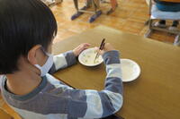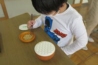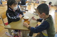 先日、このHPの学校の様子でもお知らせした今月末に行われる「お箸名人決定戦」に向けて、子どもたちは練習に励んでいます。正しい箸の持ち方をしないと大豆をうまく掴むことができませんので、担任の先生と栄養士の先生のサポートを受けながら、子どもたちは頑張っています。隙間の時間を使って、意欲的に取り組んでいます。