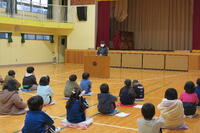 本日、2月の全校集会がありました。はじめに、お箸の達人2023の表彰です。体育健康委員会より、高学年の部優勝の6年生と低学年の部優勝の1年生に表彰状が贈られました。次は、縄跳び記録会の記録賞授与です。素晴らしい記録を出した各学年1位の児童が代表して表彰を受けました。また、計画放送委員会より、今月のめあて「明るいあいさつ 自分から」についての話がありました。明るいあいさつが飛び交う、福二小を目指すことをみんなで約束しました。