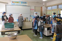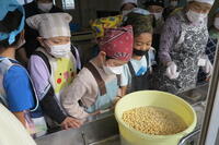本日、3.4年生が味噌づくりを体験しました。講師は、地域にお住いの秋山さんと白旗さんです。市の農政課にお世話になり、味噌づくり体験が実現しました。今日は、3人の保護者の皆さんもお手伝いに来てくださいました。