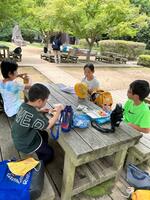 茨城県自然博物館を見学し、みんなでお弁当を食べました。午後はあすなろの里に行って飯ごう炊さん、キャンプファイヤーをする予定です。