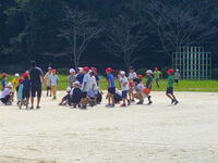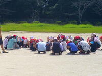 フレンドタイム(業間休み)に、地震対応のワンポイント避難訓練を実施しました。ほとんどの子どもたちが、外で元気に遊んでいましたが、教頭先生からの放送が入るとすぐに遊びを止めて、校庭の中央に集まり頭を押さえて身を小さくしていました。また、教室に残っていた子どもたちも、放送の合図ですぐに机の下に入りきちんとした一次避難を行うことができていました。