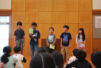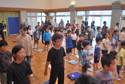 3連休が明けて、令和5年度後期の学校生活がスタートしました。3年 大槻 謙信さんの理科作品展「銅賞」の表彰をした後、後期の始業式を行いました。2・4・にじいろ・6年の後期にがんばりたいことの発表、校長より「地域や地域の方々のために自分たちにできることを考え、実行し福二小の子どもたちも地域の方々も温かく嬉しい気持ちになれるような『福にっこりプロジェクト』の活動を活発化させる」ことについての話、吉田先生からの今月の生活目標についてのお話、計画・放送委員会からの募金についてのお話を聞いた後、全校のみんなでナオトインティライミさんがつくった野田市応援ソング「The Day」を元気よく歌いました。