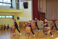 終業式の後は、体育館に移動して「太鼓部を励ます会」を実施しました。市内31校の小中学校の中で唯一の和太鼓演奏を行う部活です。迫力ある演奏、努力を重ねて素晴らしい上達を感じさせる演奏を聴いて、伝統の素晴らしさを感じました。18日(水)に行われる市内音楽会で、雄姿を見せてくれることを楽しみにしています。