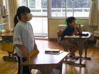 3・4年生が新体力テスト(内容が変更されて20年以上経ちますが、いつまで新が付くのでしょうか…)の種目の一つである20mシャトルランにチャレンジしていました。♬ドレミファソラシド♪の音階に合わせ、間に合うように20mを走り往復することを繰り返す種目で、ペースはだんだん早くなっていきます。今日は4年生のT.Kさんが60回を超えてトップの成績でした。20mシャトルランは、持久力をかなり正確に測定することができる種目です。3・4年生とも最後までしっかりとがんばりました。