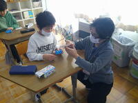 説明書が少しわかりにくいのと、作業が細かくて3年生にとっては難しいことから、悪戦苦闘していました。それでも、見本を見たり、坂野先生、木下先生、校長の支援を受けたりしながら、何とか全員準備が完了(通電確認もOK)しました。次の時間は、今日準備した実験用具を使って「電気を通すもの・電気を通さないもの」を見分ける実験を行います。楽しみですね。