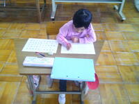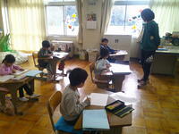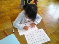 チャレンジタイムで1年生がカタカナの練習に取り組んでいました。ひらがなに似ている文字もあり、そのほんのちょっとの違いを書き分けるのが難しそうです。お手本のプリントを見ながら一生懸命に取り組んでいました。担任の吉田先生からは「月曜日には、お手本なしにチャレンジするよ!」との声かけがありました。お手本を見なくても上手に書けるといいですね。