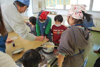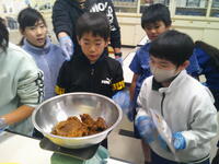 にじいろ学級と1年生が、切り干し大根を使ったみそ汁作りに挑戦しました。切り干し大根は、木村教頭先生に提供してもらった大根を使って干した「自家製」のものです。飾り麩(彩り麩)を入れて見た目よく、また、隠し味にちょっとしょうゆを加え、とても美味しいみそ汁ができました。1年生からも「美味しい~!もっと飲みたい!お代わりないの!?」という声が聞かれました。ご参加・ご協力いただいた保護者の皆様、ありがとうございました。こうした体験活動を、これからも大切にしていきます。