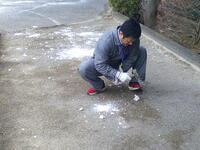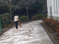 明日の積雪に備えて、午前中まで雪が降りだす前に市道~門、市道~給食室側の入口、児童の動線に融雪剤(塩化カルシウム)を散布しました。現在この文章を打っている最中でも、予想以上の降雪となっています。