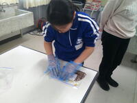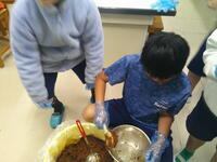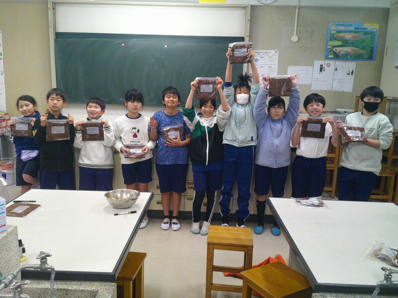 3年生の時に仕込み、12月に天地返しを行った味噌が完成しました。はかりを使って、一人1kgずつに分けて袋に詰めました。丸くて固い大豆(色は白色)が1年間を経て、このように(色も形も手触りも何もかも)変化することを目の当たりにして、子どもたちにはどんな疑問や驚き、喜びがあったのでしょうか。追究することができる子を一人でも多く育てていきたいです。