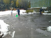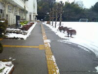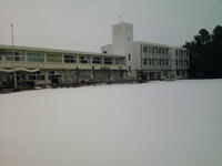 気温が思っていたよりも下がらなかったせいなのか、早めに止んだせいなのか、しっかりと積雪は残りましたが、思っていたほどではありませんでした。それでも、校庭は真っ白です。
