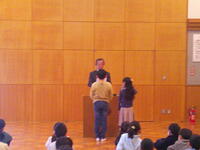 2月の全校朝会を行いました。東葛地区家庭科作品展の入賞と読書賞の表彰の後、校長からは「自分を好きになり、自分に自信を持ち、たくさんの人から感謝されたり喜んでもらったりできる人になろう」という趣旨の話をしました。その後、おひさま学級の山口教諭より節分について「心の中にいるオニに打ち勝てるようになる」話がありました。最後に全校で「ありがとうの花」を歌いました。