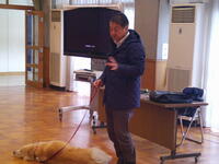 身の回りにあるいろいろな便利なものは、大変なことに苦労している人を楽にするために生まれてきたものが多いこと、「働く⇒はたらく」の語源は、傍(はた・・・他者)を楽に(幸せに)することにある というお話から始まり、不幸なペットを少しでも減らすための取り組みに尽力してきたこと、ペットが幸福に思う飼い方やふれあい方について、ペットにとってのトリミングの意味等を、身振り手振りを交えながら熱く語っていただきました。6年生も、待山さんの気持ちをしっかりと受け止めて、真剣に聴き入っていました。そして、なんと言ってもバディ君の愛らしさ。様々な表情としぐさからあふれる可愛らしさとその賢さに、子どもたちはすっかり魅入られでしまいました。