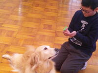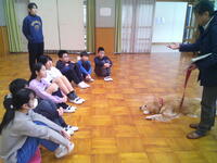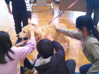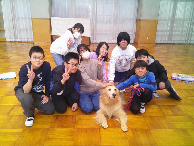 ペットサロンAI AI(株式会社SAN AI)の待山 弘 様と看板犬(ゴールデンレトリバー)のバディ君を講師に迎えて、6年生のキャリア教育講演会を実施しました。