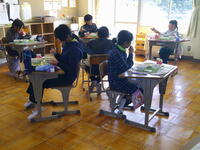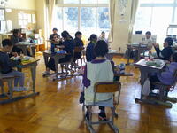 清水公園へのお別れ遠足は、基本的にたてわりのグループ活動で実施しました。学校へ戻った後は、たてわりグループごとに分かれて、お別れ給食会を実施しました。いつもと違うメンバーで食べる給食はどうだったでしょうか。1年生から6年生まで、全員の顔と名前が一致するたてわり活動は、まさに少人数の素晴らしい側面なのだと思います。
