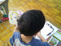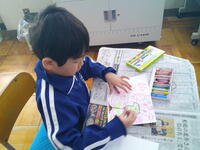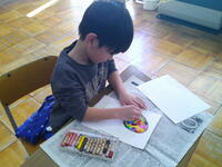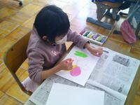 1年生が図工で「心の花をさかせよう」という内容に取り組んでいました。もうすぐ卒業してしまう(いっぱいお世話になった)6年生と、4月に入学してくる新1年生への贈りもののようです。思い思いにクレヨンをつかって、丁寧にお花を描き上げていました。