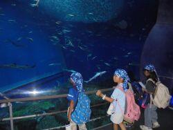 昨日、2年生が校外学習でアクアワールド茨城県大洗水族館に行ってきました。熱中症警戒アラートが発令されている暑い日でしたが、水族館の中は涼しく、グループの友達と仲良く楽しく見学していました。アシカとイルカのショーは、水しぶきがかかり大さわぎでした。とても楽しい思い出に残った校外学習になったことと思います。
