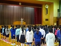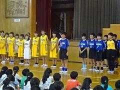 始業式の後に「ミニバス・サッカー部を励ます会」を行いました。