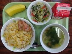 今日のメニューは「カレーそぼろご飯」「牛乳」「春雨スープ」「ひじきのサラダ」です。