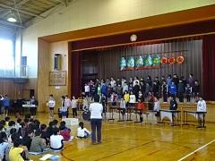 また、全校合唱の練習を指揮者にあわせて行いました。