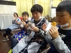できあがった「しょうゆ」をおせんべいに塗って食べることができ、皆とても満足そうでした。