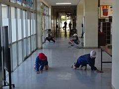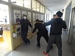 不審者役は先生が行い、全員が無事に体育館に避難することができました。