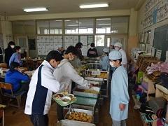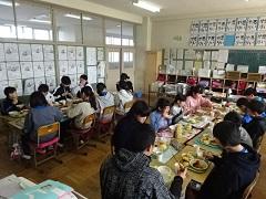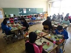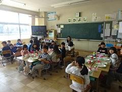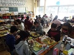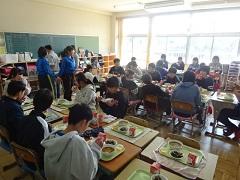 各教室に分かれ、皆さんを囲んで楽しく給食を食べることができました。