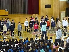 練習を始める前に、二ツ塚小学校は『何かをつくりあげるために全員が力を合わせ、心をひとつにできる学校』『そして、作り上げた何かで全員が感動できる学校』であると伝えました。