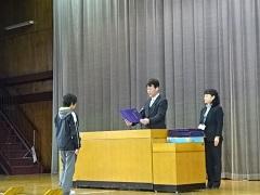 生活委員会から3年生のあいさつの頑張りに表彰がありました。