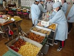 卒業を前に、バイキング給食を食べて楽しい思い出を作ってほしいという思いから、栄養士さんと調理員さんが一生懸命に準備をしてくれました。