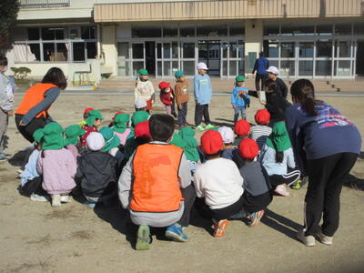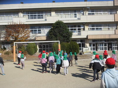 今日は福田保育所のはと組さんと福田第一小学校の1.2年生が二ツ塚小に来ていただき、「なかよし会」を行いました。お天気もよく、穏やかな日だったので、外で、元気に遊びました。