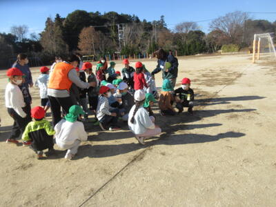 次は二ツ塚小の子ども達が、「だるまさんがころんだ」の遊びを進めました。