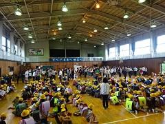 教室で1次避難をした後に2次避難で体育館に集まりました。