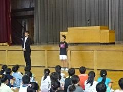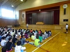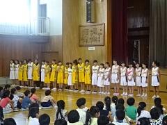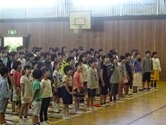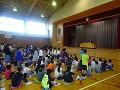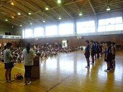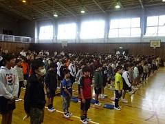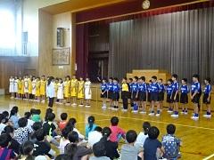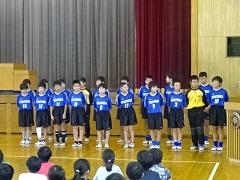 始業式の後に「ミニバス・サッカー部を励ます会」を行いました。